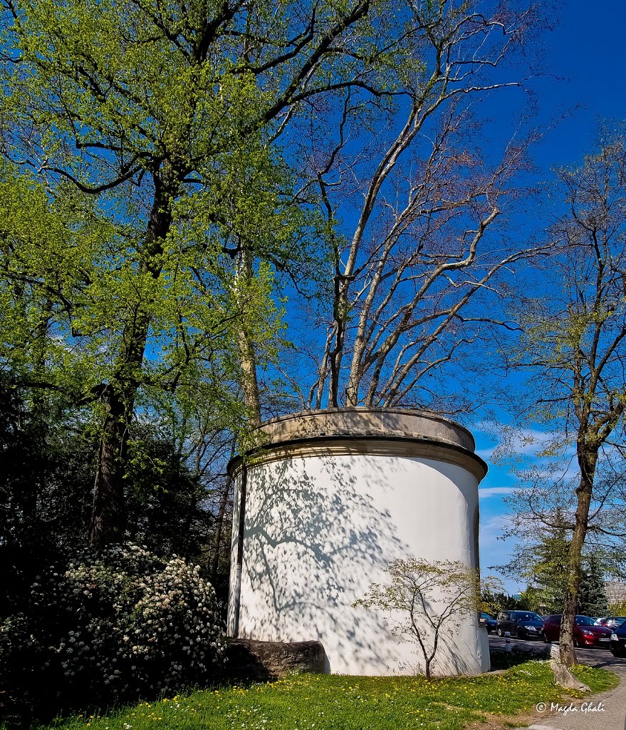 Sur la droite du parc, on peut apercevoir un modeste pavillon, seul vestige du lieu où fut scellé l’acte officialisant les nouvelles frontières genevoises. Celles-ci ont été reconnues en 1816 lors du traité de Turin et sont toujours en vigueur aujoud’hui! Ce document est signé par Charles Pictet de Rochemont et l’émissaire du roi de Sardaigne, Victor-Emmanuel de Savoie (voir Rondeau de Carouge).