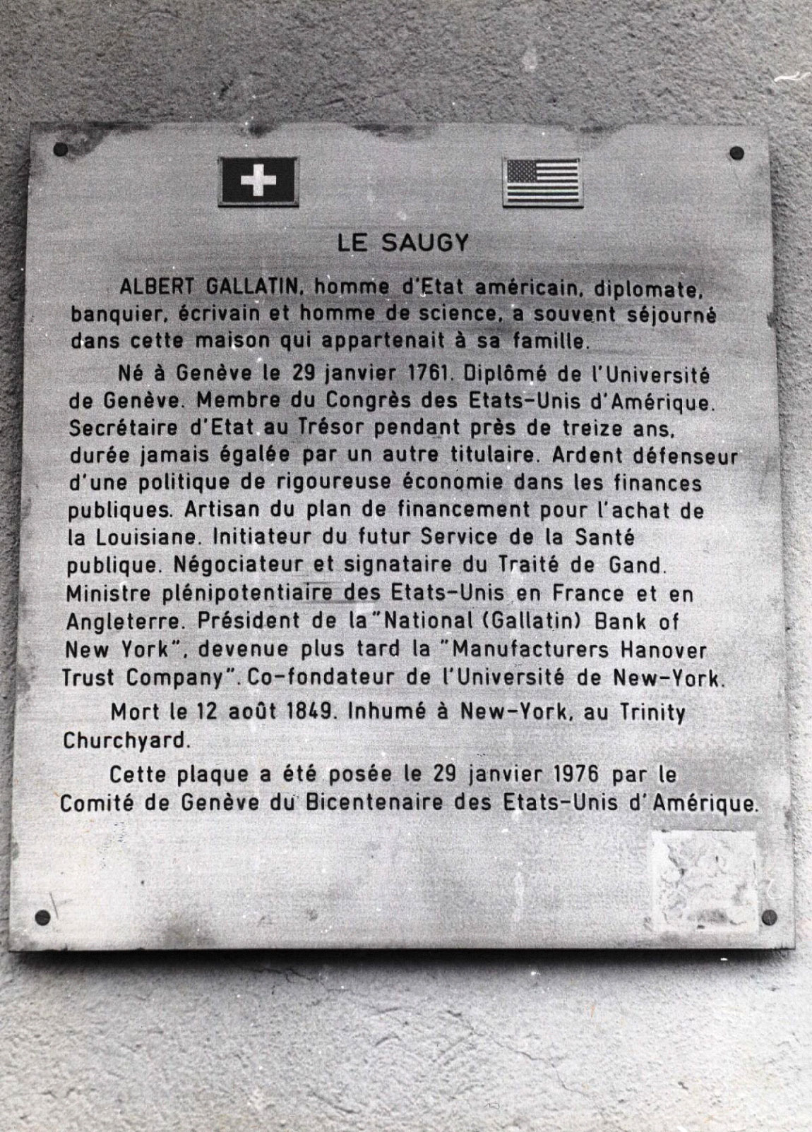 - Albert Gallatin, Genevois au service des Etats-Unis d’Amérique, Bénédict de Tscharner, éditions Infolio & éditions de Penthes