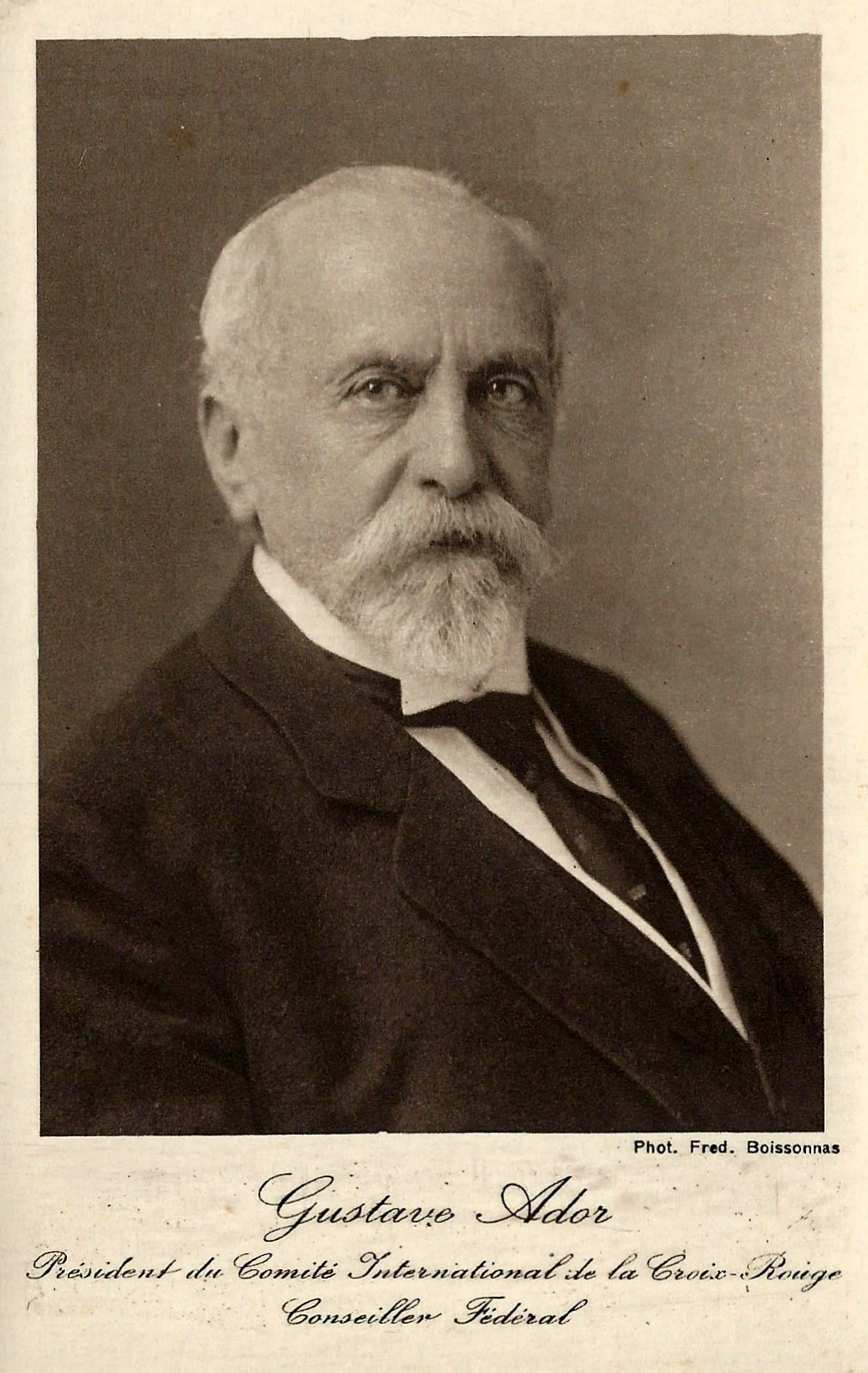 Notons que Gustave Ador est le neveu par alliance de Gustave Moynier, l’un des fondateurs du Comité international de la Croix-Rouge (voir CICR) qu’il présidera durant de très nombreuses années. Fait peu commun pour les acteurs de l’humanitaire genevois de son temps, Ador n’est pas issu de familles du Refuge huguenot, mais son action est également animée par une foi vivante. Il est aussi le fondateur de l’Agence internationale des prisonniers de guerre (voir Place de Neuve).