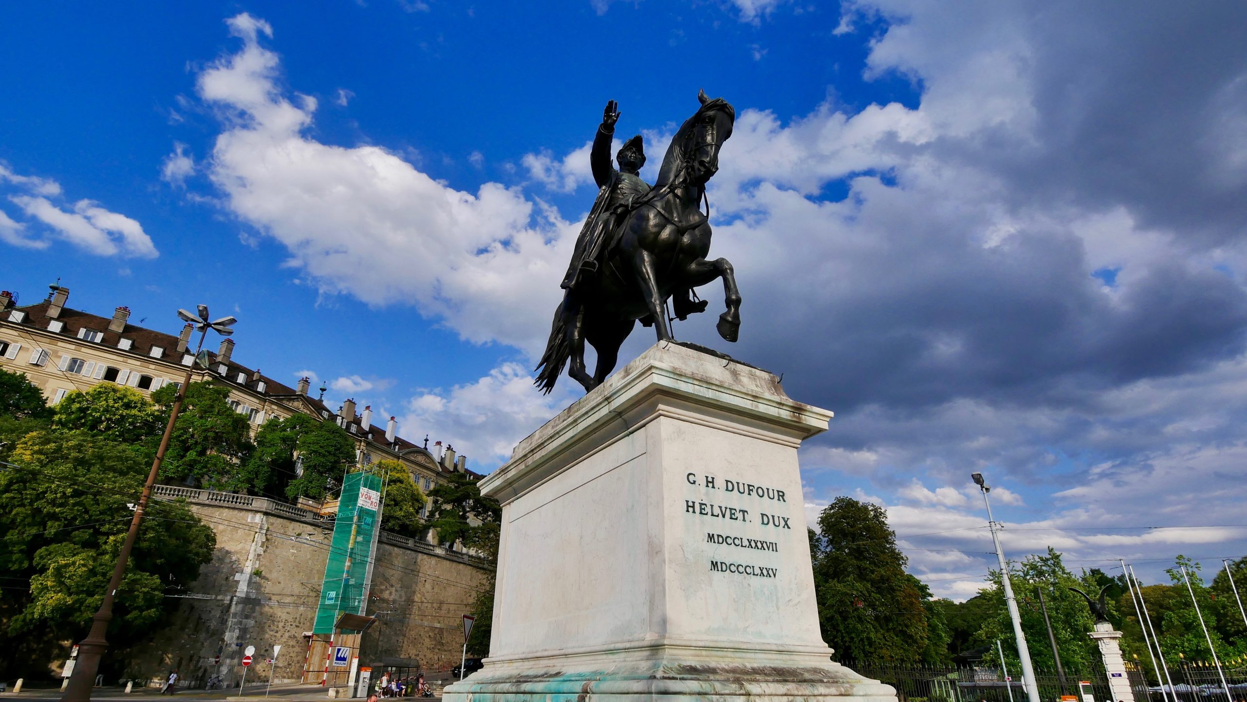 Et quelques années plus tard la statue équestre du général Guillaume Henri Dufour (1787-1875), oeuvre du sculpteur suisse Karl Alfred Lanz, vient parachever l’ordonnance de la place, moins de 10 ans après le décès du général.