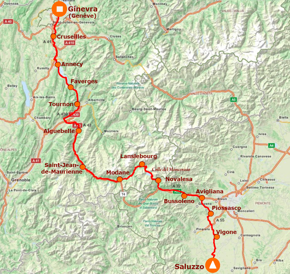 Depuis Saluzzo, les vaillants exilés vaudois, bravant l’hiver, la neige et le froid, traversent la plaine du Piémont, gravissent le Mont Cenis à près de 2000 mètres d’altitude, arrivent en Maurienne, puis se dirigent sur Annecy et poursuivent leur chemin en direction de Genève.